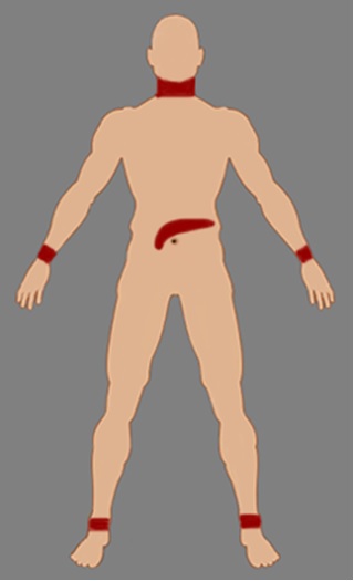 4) Чтобы произвести процедуру лечения нужно прямо у жертвенного (зарезанного) животного руками брать кровь с вытекающей струи и сразу же 2-3 раза обильно нанести на участки тела указанные на